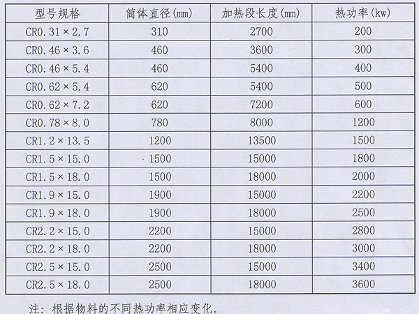 锻烧回转窑的设计需要根据锻烧物料的锻烧温度、锻烧时间、锻烧气氛、锻烧产量等工艺参数确定,通用的规格有: